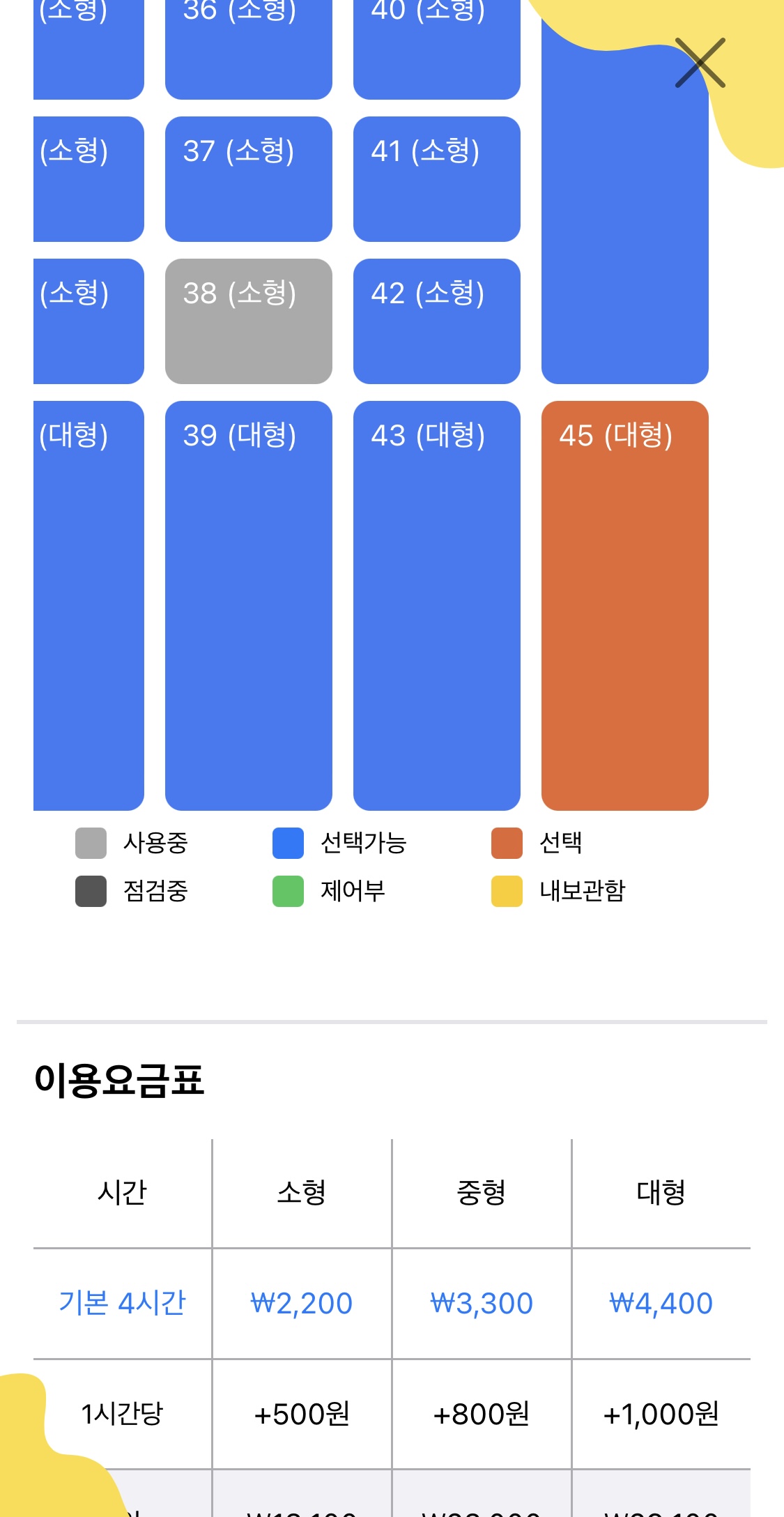 기본요금 : 4시간 기준 이고, 1시간당 추가요금이 발생하며, 크기에 따라 큰 금액이 나온다. (와우)