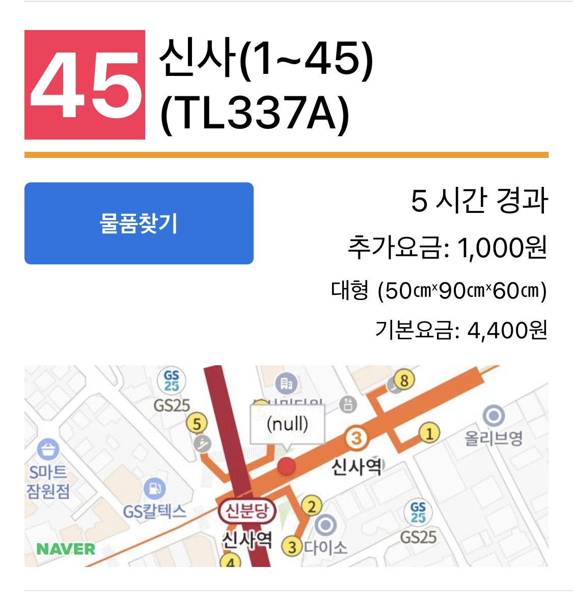 대략적 위치 신사역 짐보관 시간 및 요금