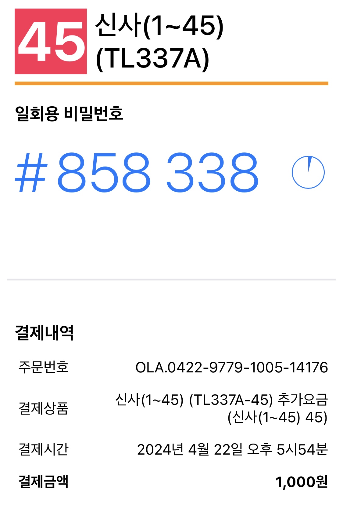 임시비번이 앱으로 전송된다