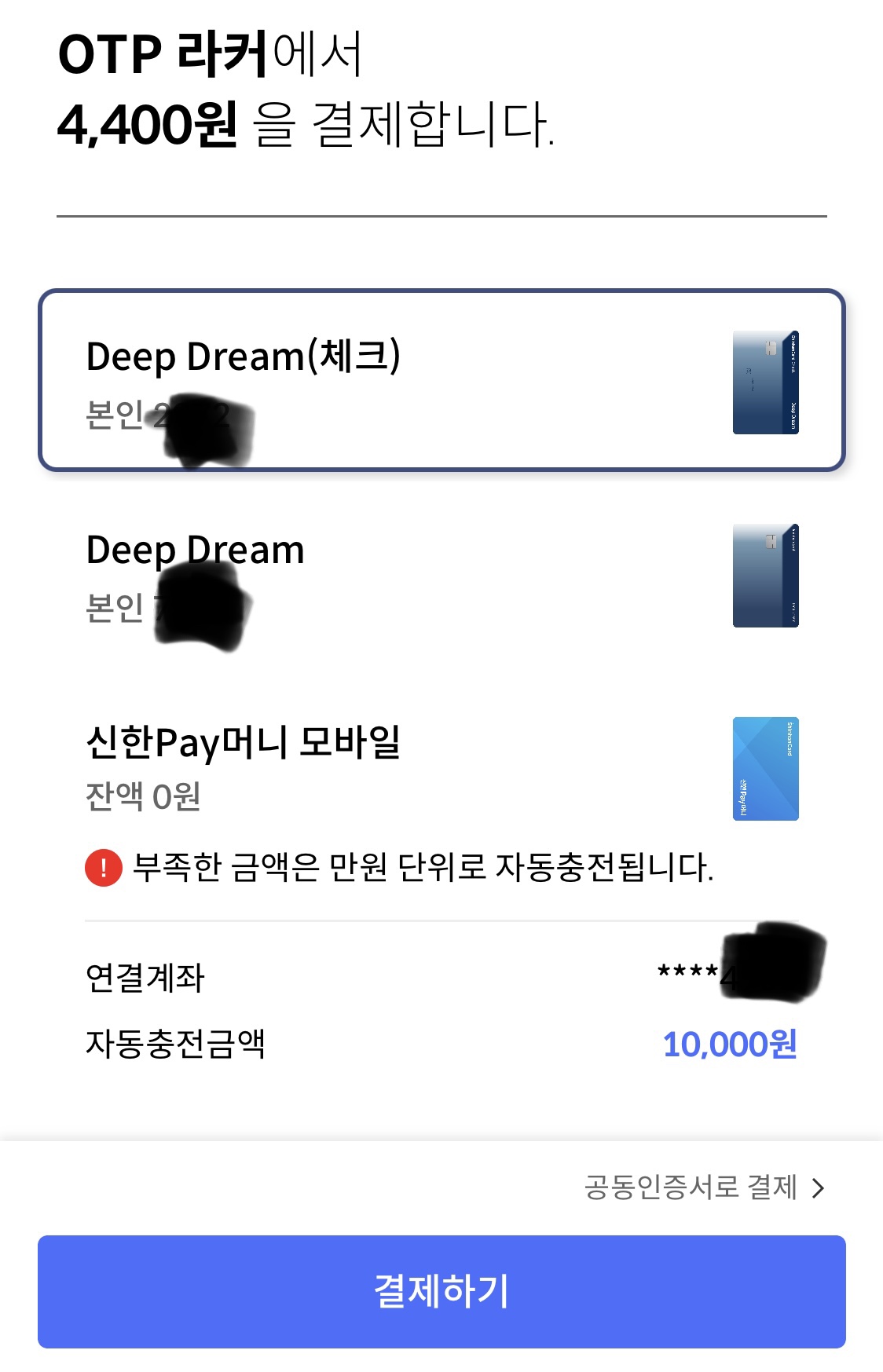 3. 결재 진행: 위치 선택을 하면 결재를 하는데 원하는 방식으로 진행하면 된다. 나는 신한 솔을 이용