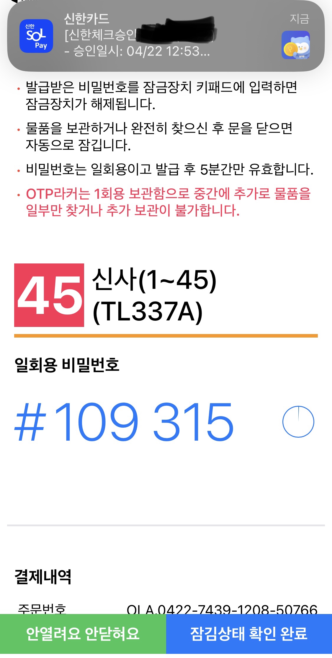 4. 짐 보관: 결재가 되면 돈이 나가고,선택한 보관함에 짐을 넣고 비밀번호를 설정합니다. 5분안에 비번 입력해줘야함