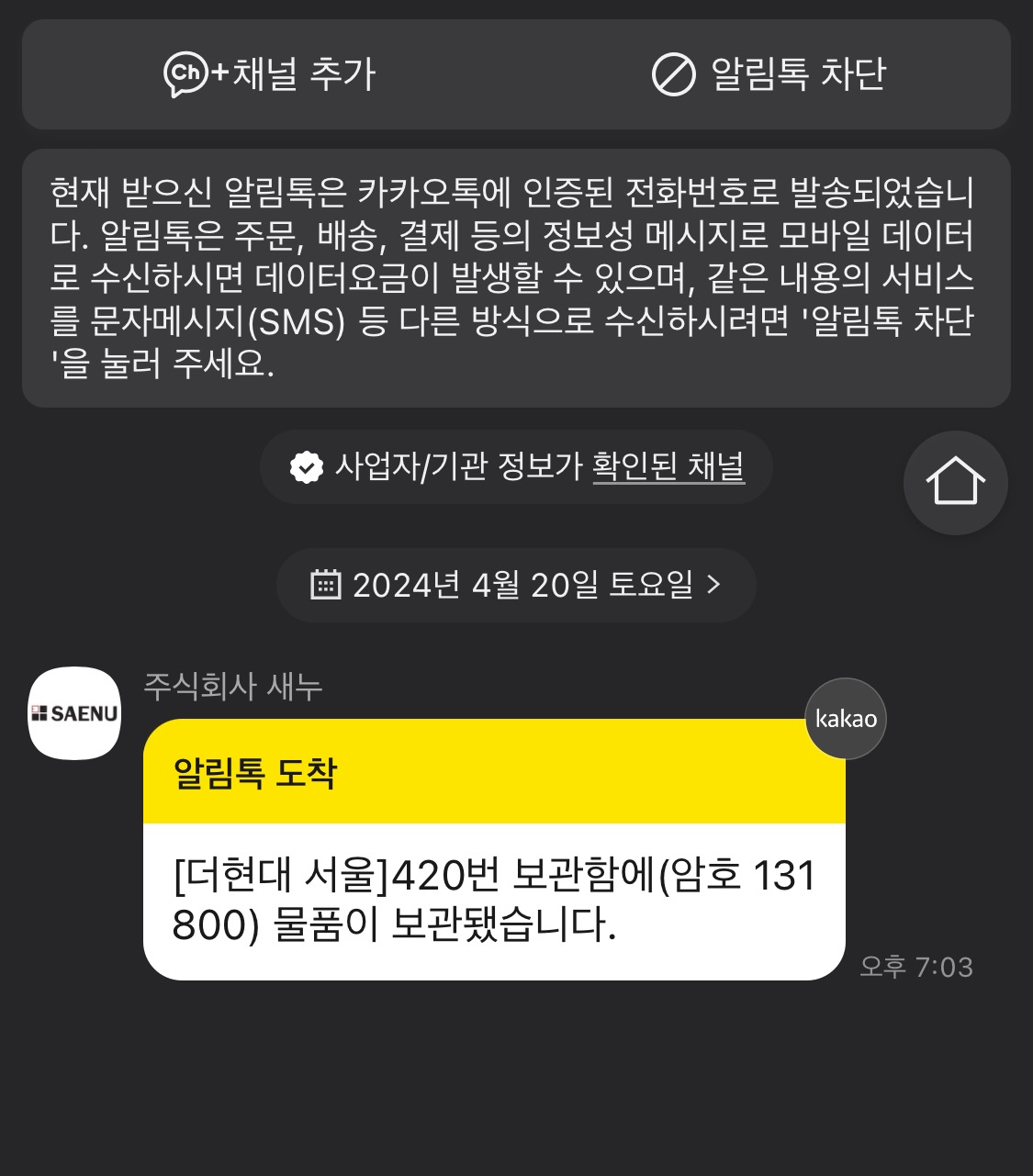 현대백화점 더현대 서울 방법은 보관번호 누르고 전번 넣고 비번 받고 끝.