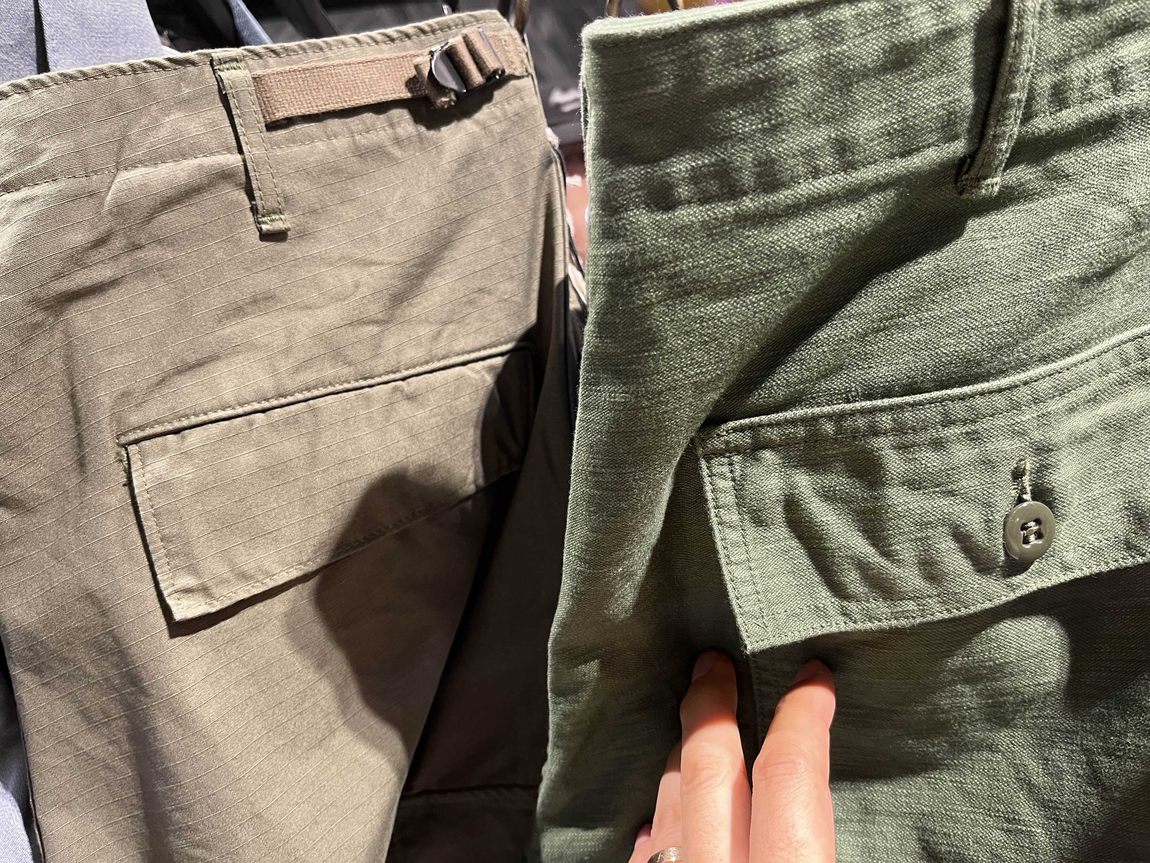 나는 매장에서 2종류 밖에 못보아서 01-5002 US Army Fatigue Pants Original Fit 것과 03-V5260RIP Army Green 6 Pockets Cargo Pants를 입어봤는데 두번째 스타일이 훨씬 소재의 느낌과 핏이 좋았다. 신발때문 일수도 있고.. 밑단을 묶을수 있는 끈 과 옆 주머니 덕분에 약 11만원이 더 비싼 옷이 좋았다.