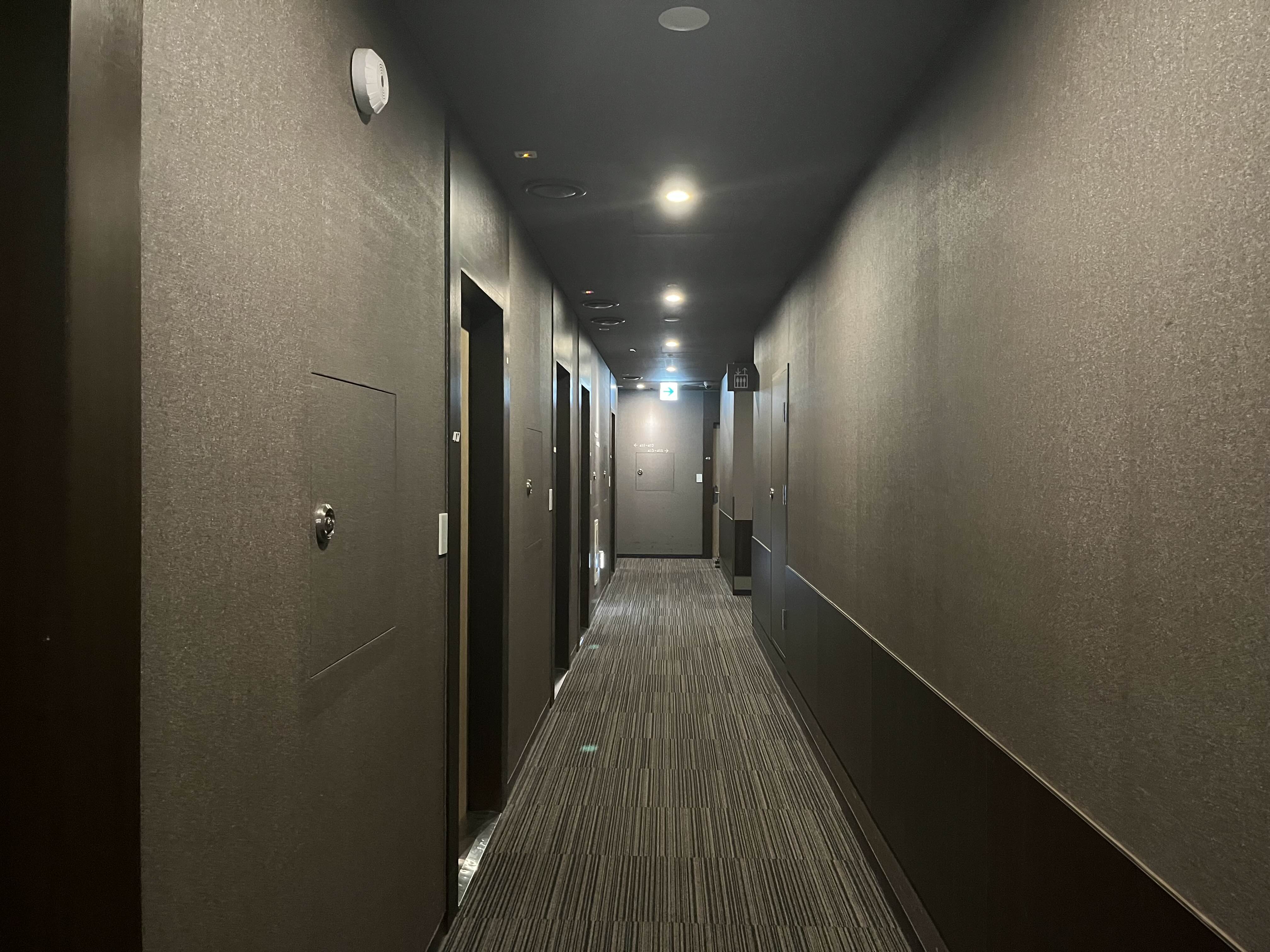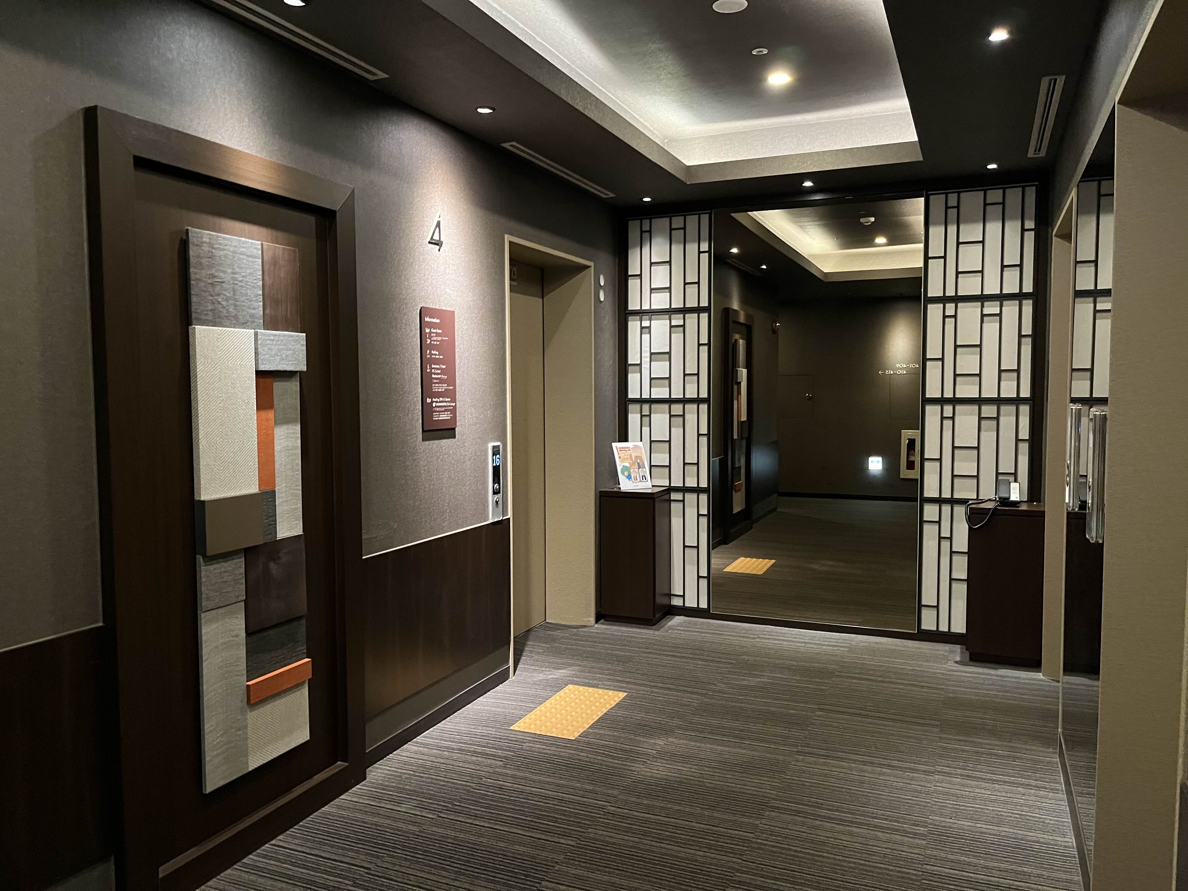 엘리베이터 입구 - 4층 복도는 카펫으로 되어있고, 조용하고 아늑했다. 톤이 차분하게 조용한 복도.