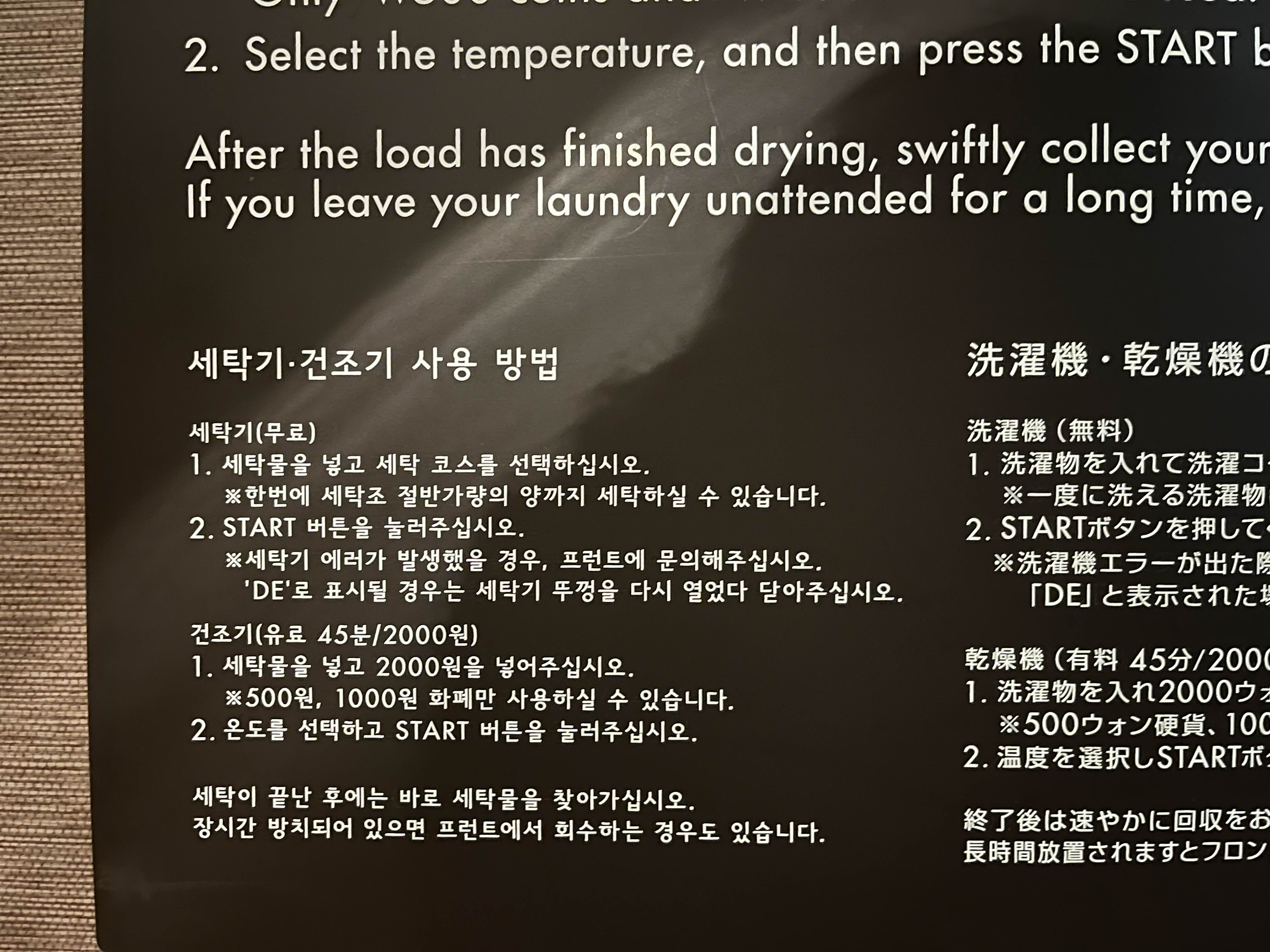 세탁무료! 세탁은 무료/ 건조기 유료 45분/2000원