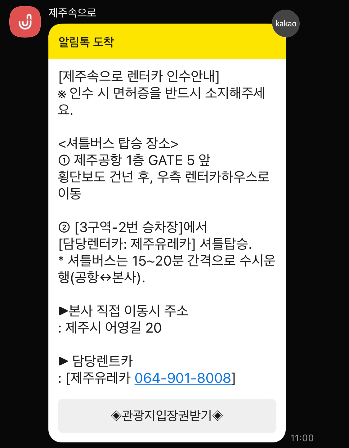 제주 공항에서 유레카 까지 셔틀시간