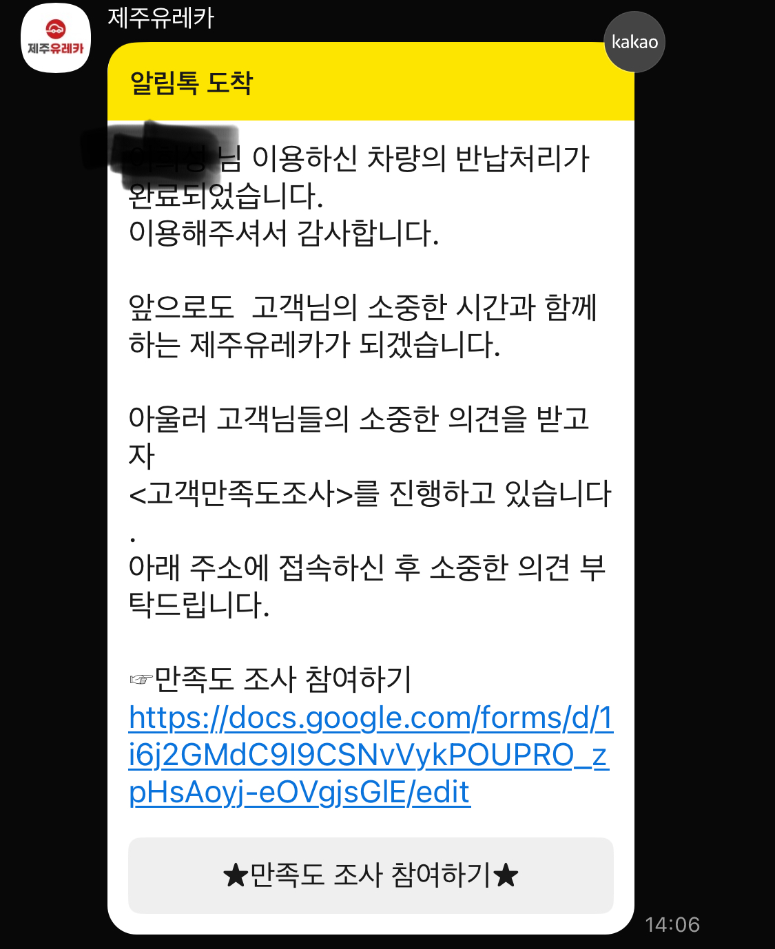무사히 반납을 하면 문자가 온다 이게 잘되어야 진짜 마무리.. 휴