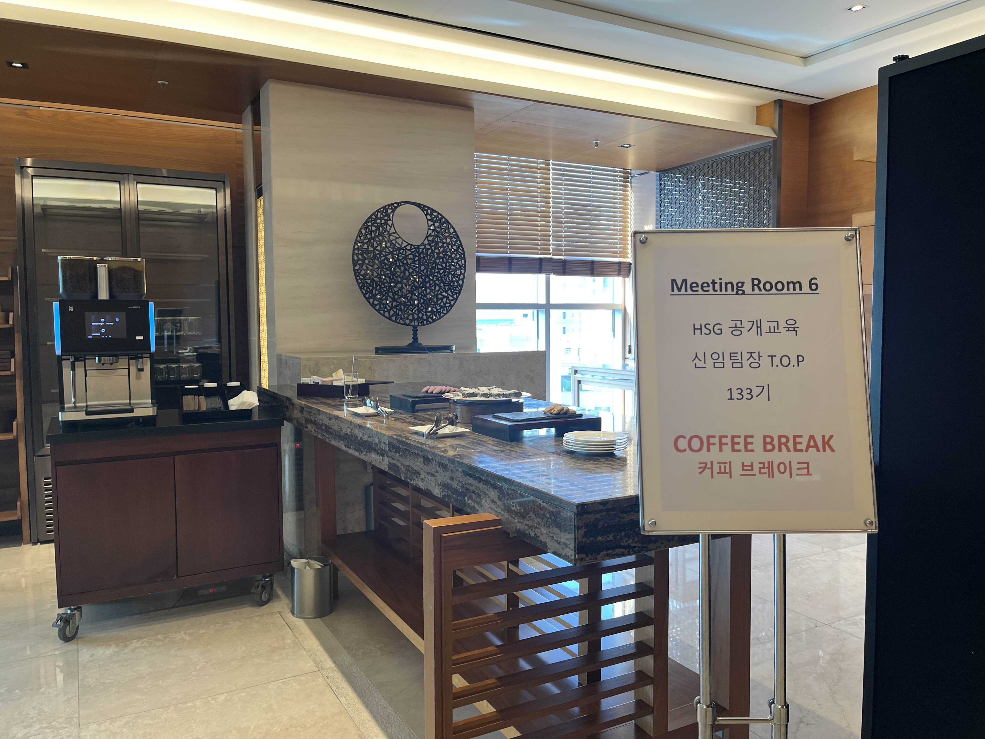 코트야드 메리어트 4층 미팅룸5층으로 가서 계단을 통해 내려와도 되고, 엘베로 한번에 올라가도 된다. 4층 미팅룸은 다양한 사이즈로 목적에 맞게 되어있으며, 가벼운 커피및 빵도 준비되어 있었고, 소방서 뷰가 좋았다? ㅋㅋ