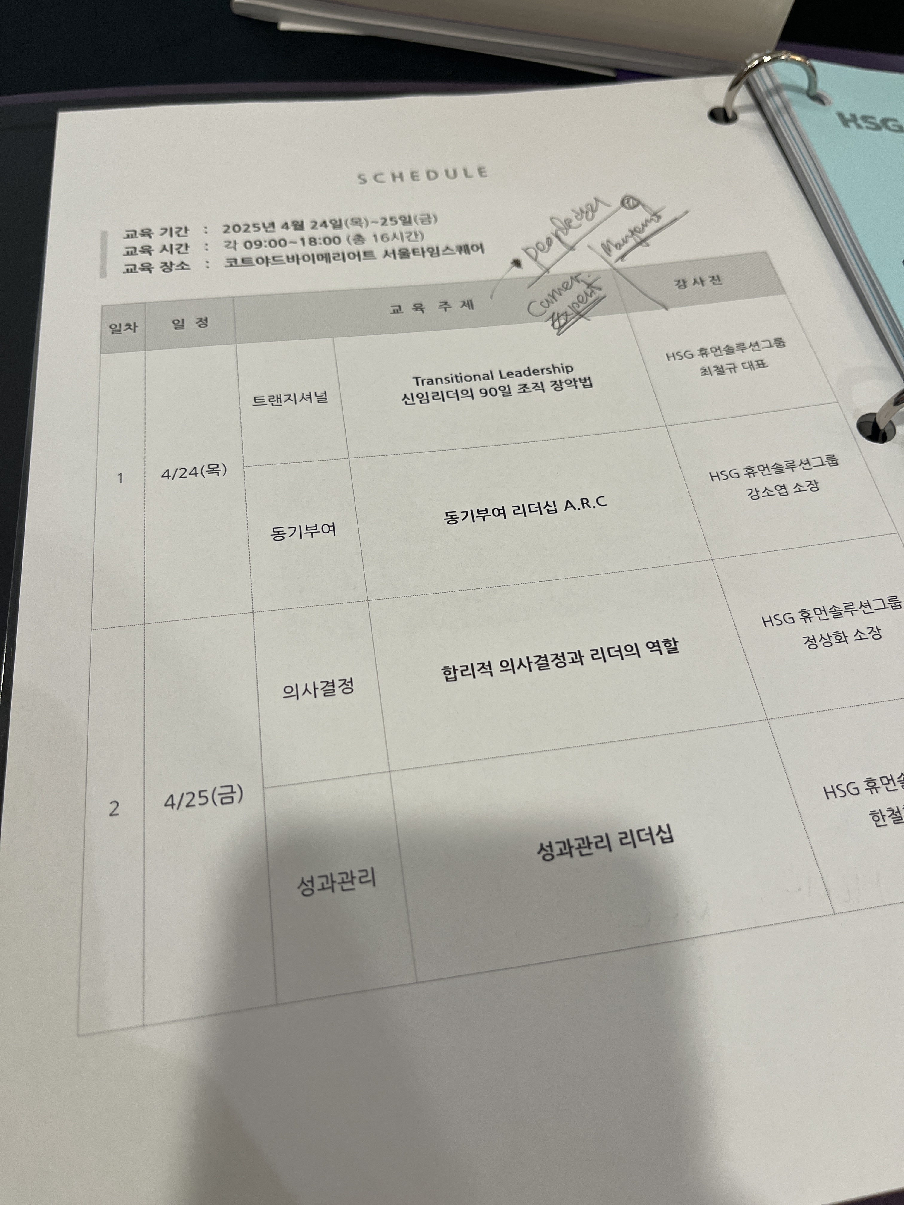 코트야드 메리어트 HSG 신임팀장교육다양한 분야의 고수님들이 오셨다!