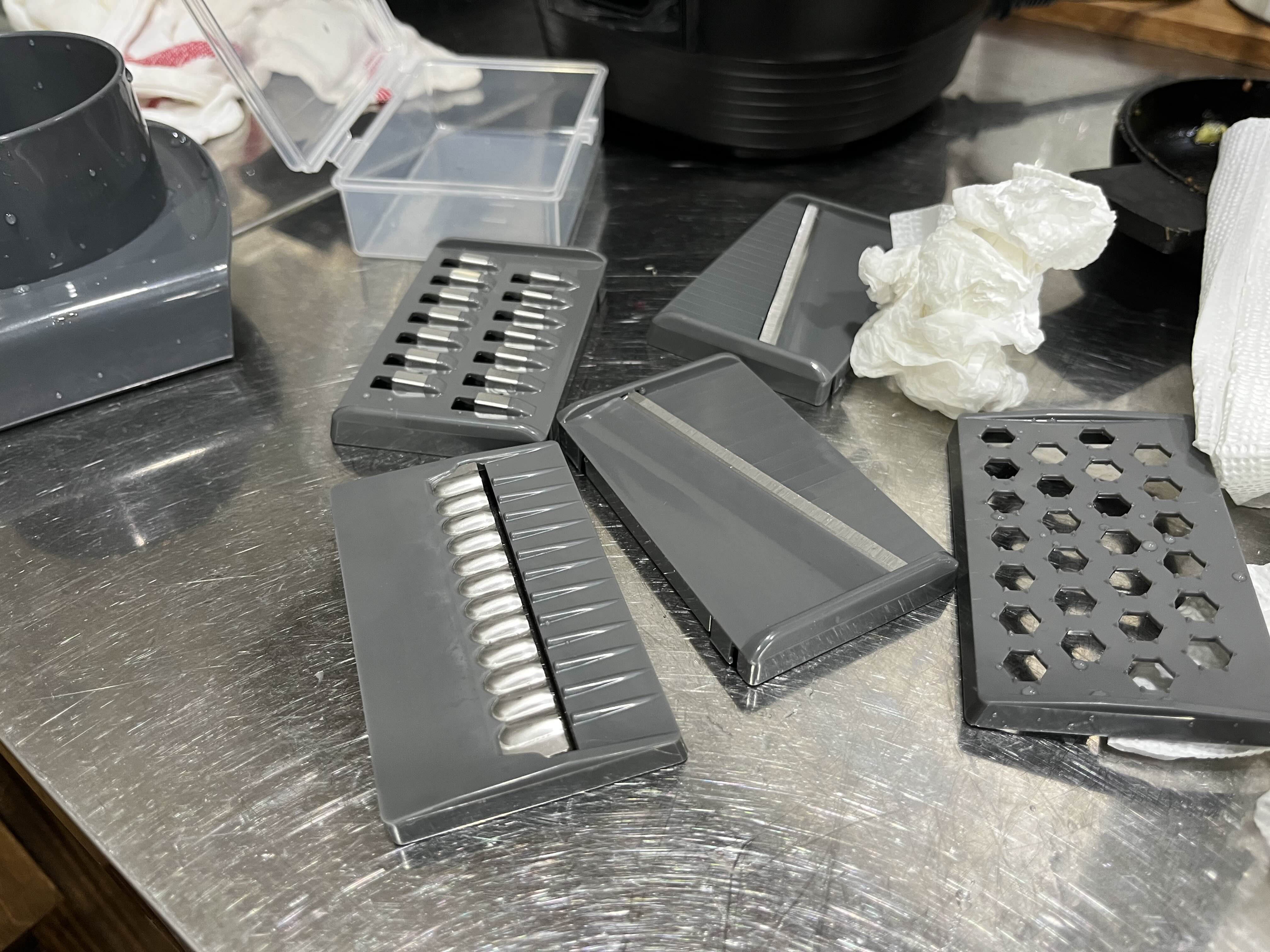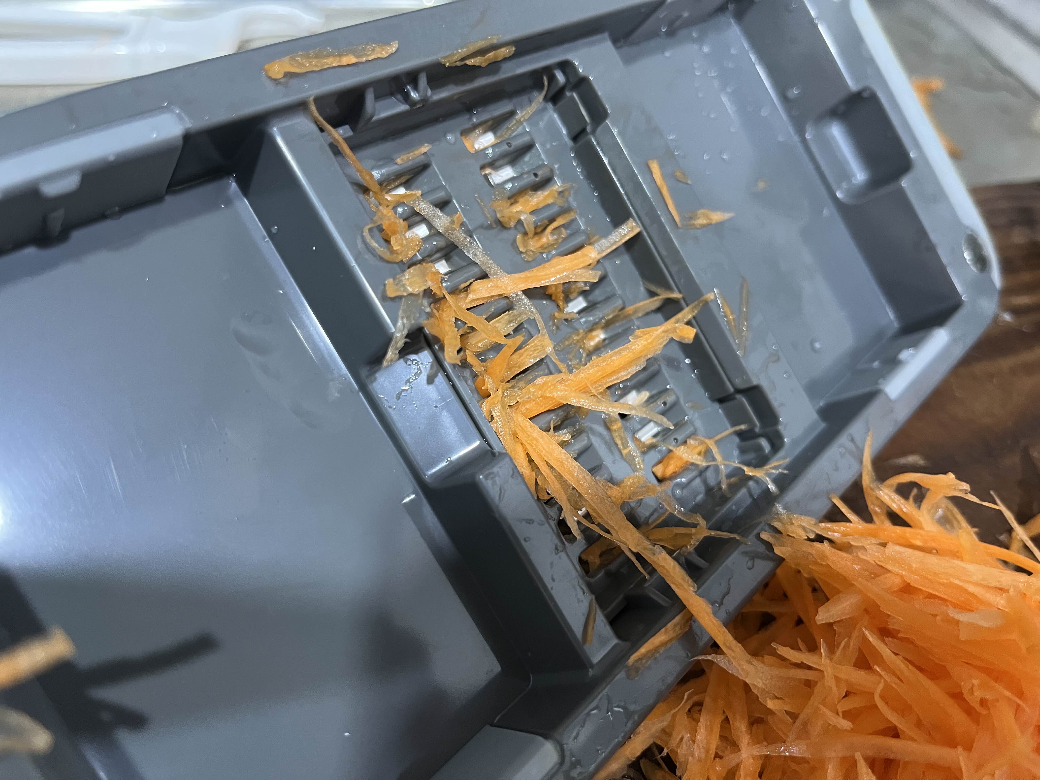 만능채칼 뒷면 채칼을 통해 당근을 썰고 보니 많은 당근이 끼여 있는데, 청소는 오히려 핸디형 보다 편하게 제거가 되었다.!