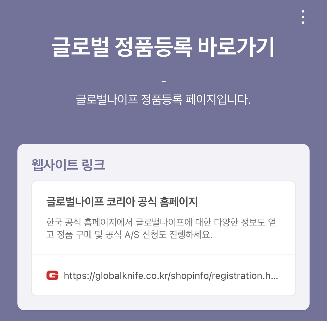 글로벌 나이프 정품등록어렵지 않다 카메라로 정품등록의 큐알코드를 찍고 아래의 순서대로 진행하면 끝!