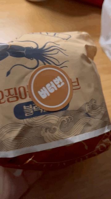 오픈하고 오징어버거 오징어 모양이 아니라 진짜 통오징어였다!?